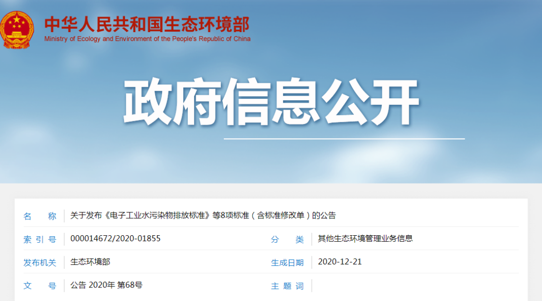關(guān)于發(fā)布《電子工業(yè)水污染物排放標準》等8項標準(含標準修改單)的公告