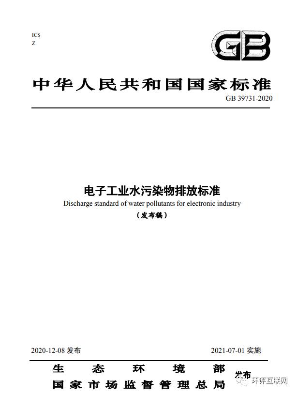 一、《電子工業(yè)水污染物排放標準》(GB 39731-2020)