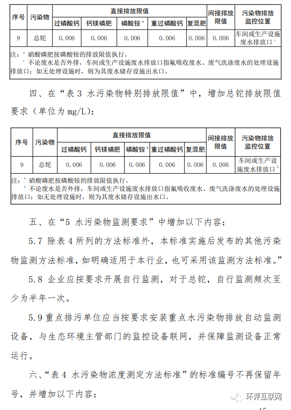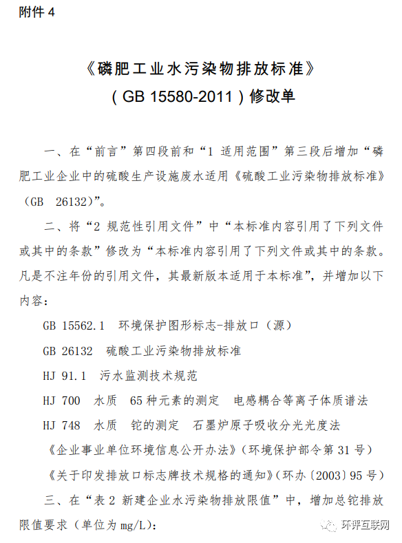 4.《磷肥工業(yè)水污染物排放標準》(GB 15580-2011)修改單