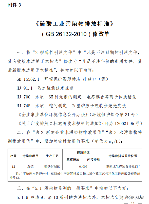 3.《硫酸工業(yè)污染物排放標準》(GB 26132-2010)修改單