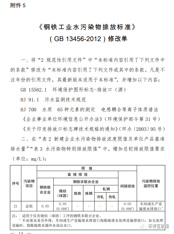 5.《鋼鐵工業(yè)水污染物排放標準》(GB 13456-2012)修改單