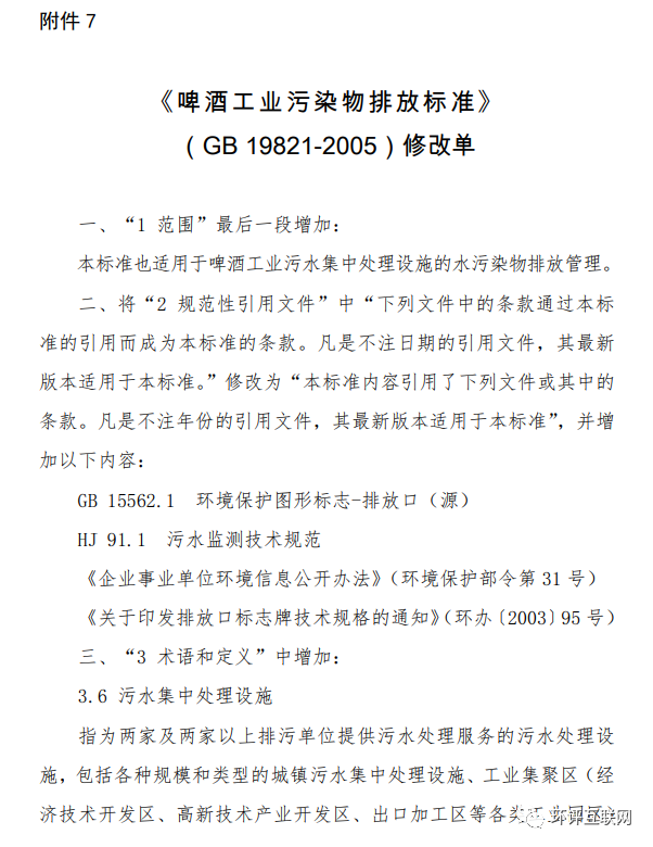 7.《啤酒工業(yè)污染物排放標準》(GB 19821-2005)修改