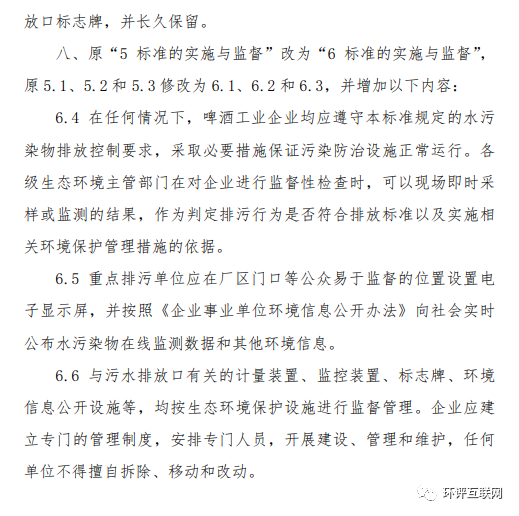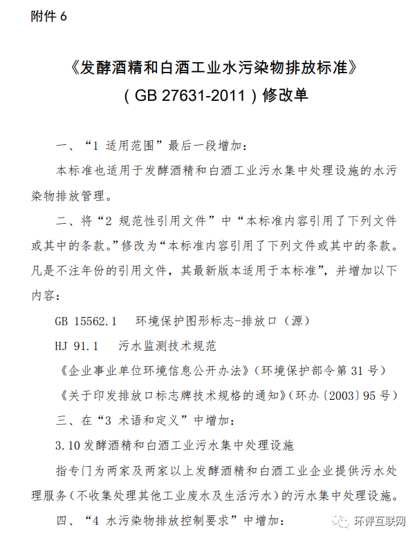 6.《發(fā)酵酒精和白酒工業(yè)水污染物排放標準》(GB 27631-2011)修改單