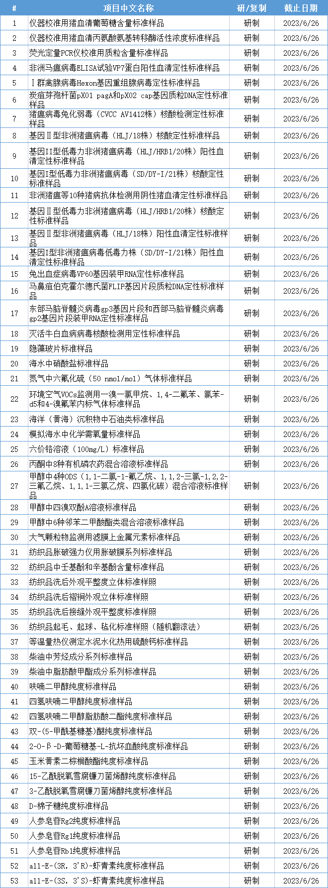 據(jù)悉,征求意見截止時(shí)間為2023年6月26日,通知的53項(xiàng)標(biāo)準(zhǔn)如下。