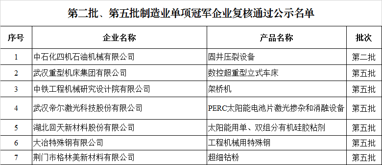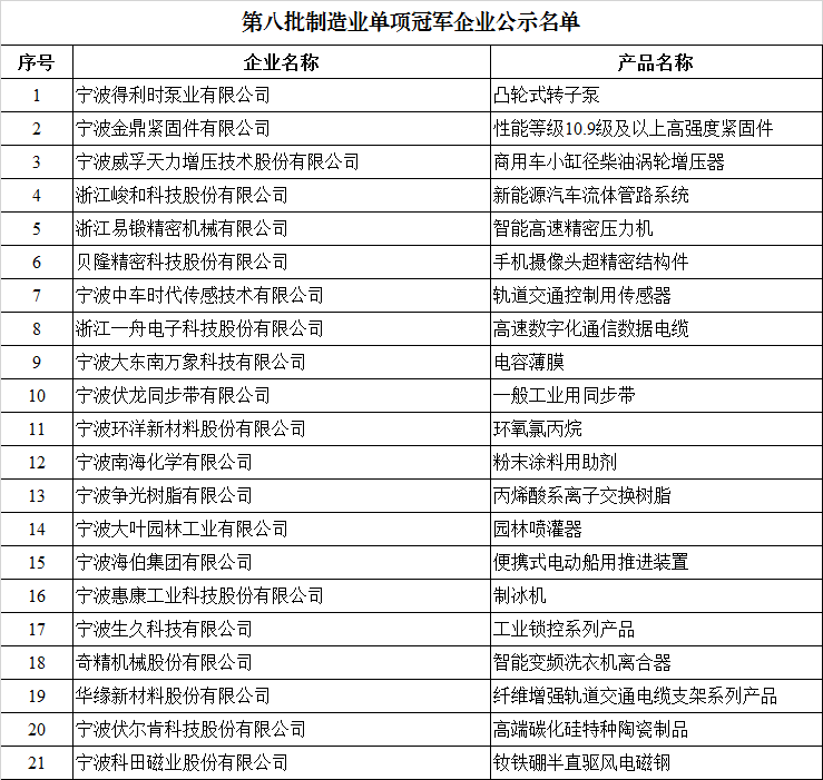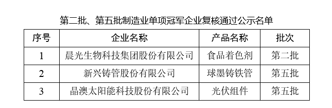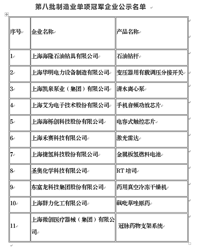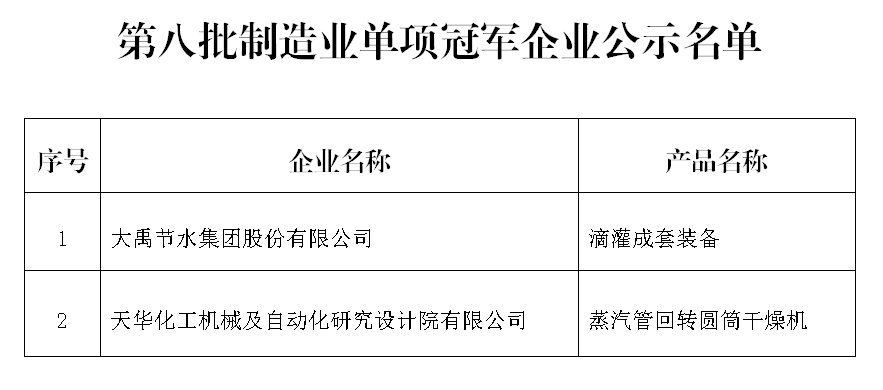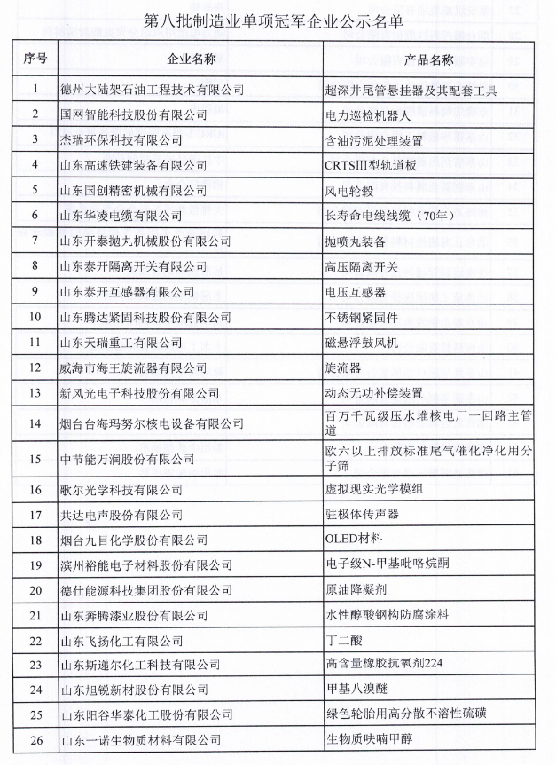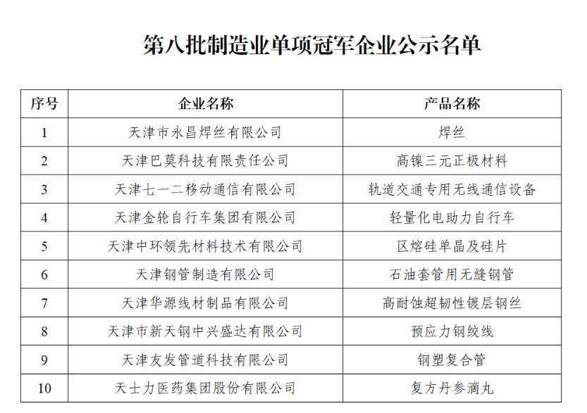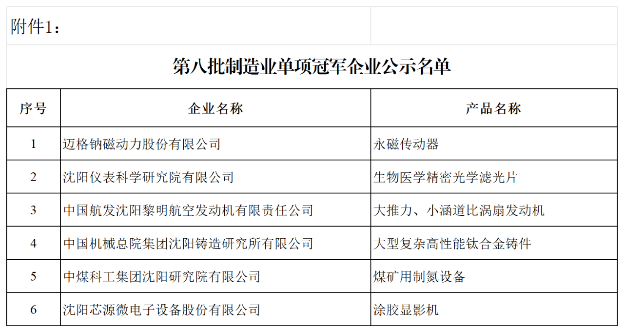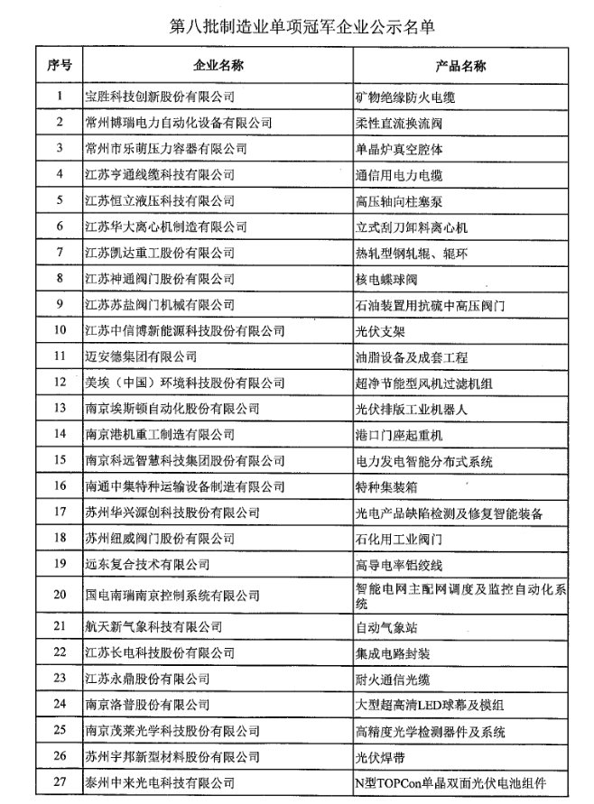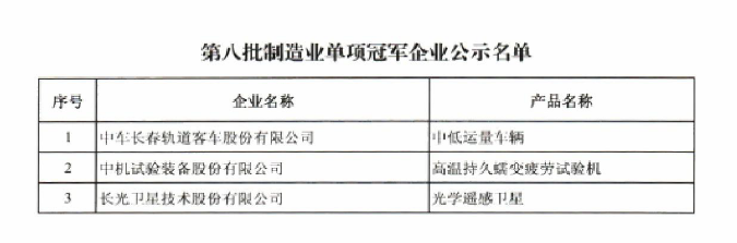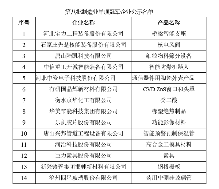 第八批制造業(yè)單項(xiàng)冠軍企業(yè)公示名單