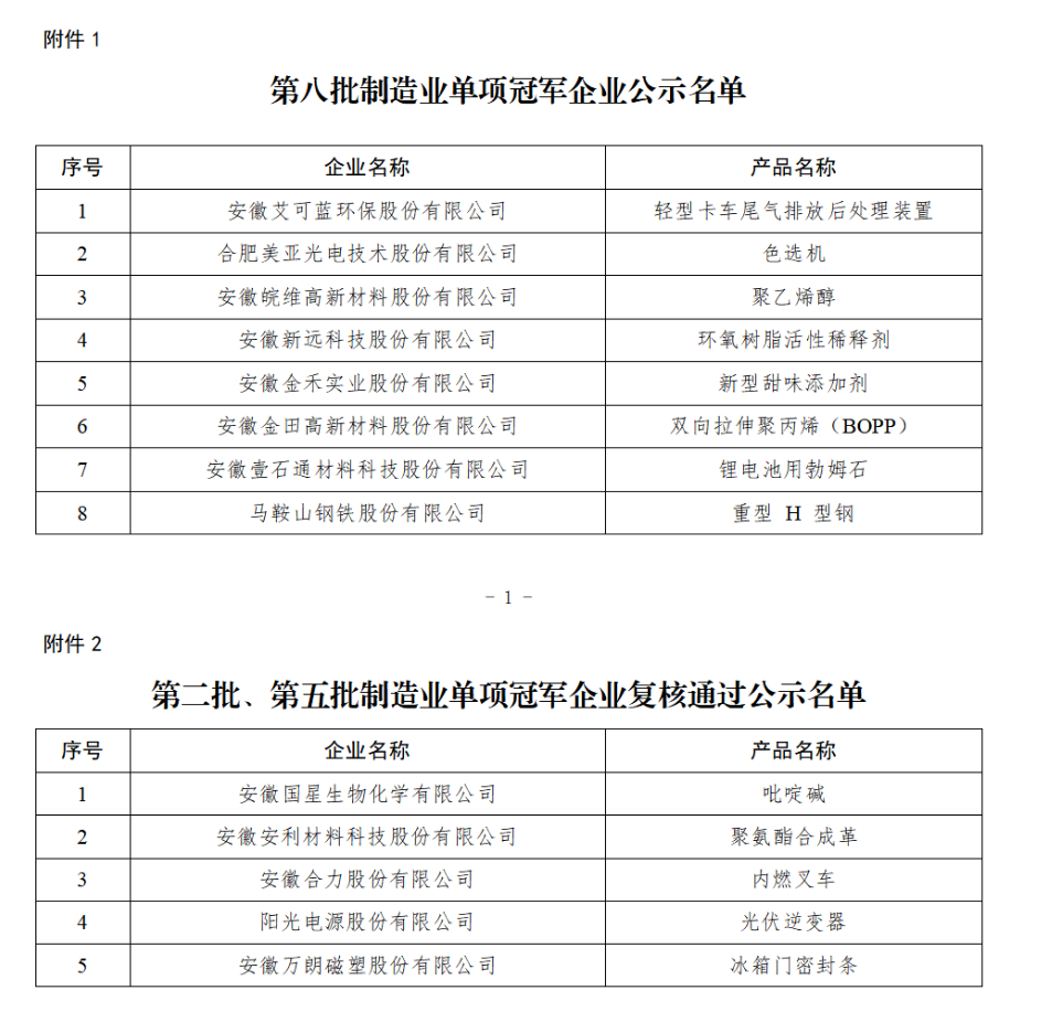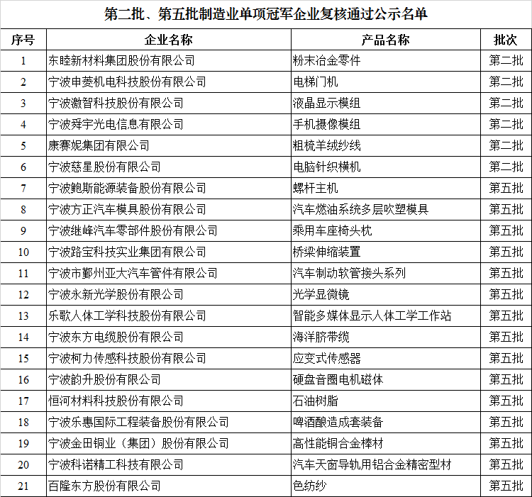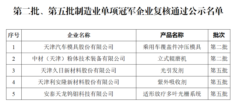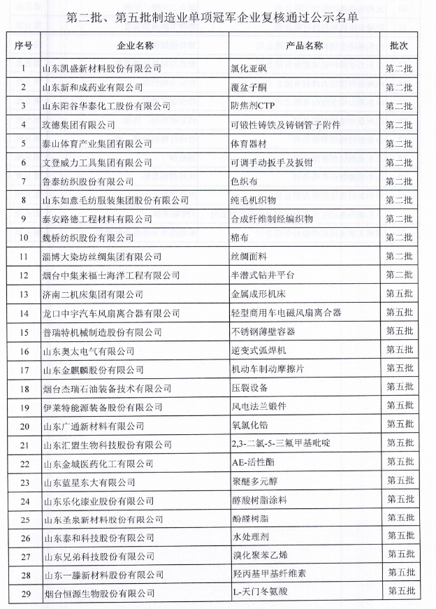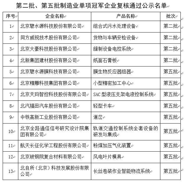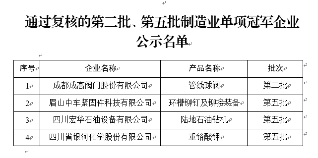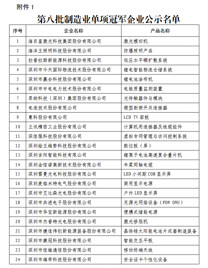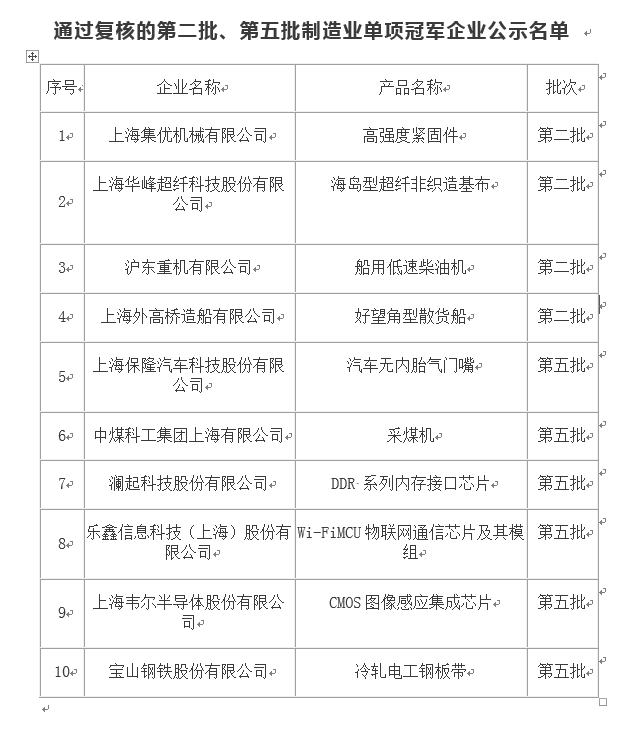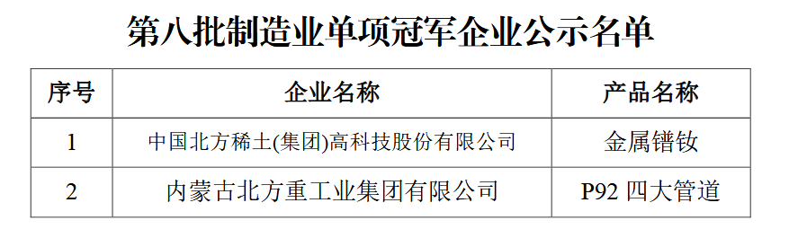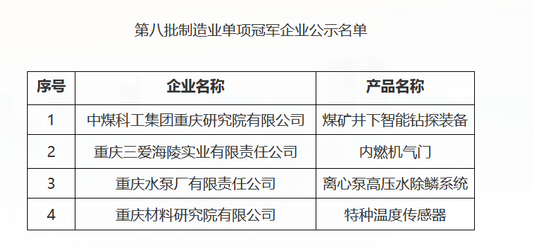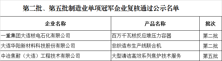 第八批制造業(yè)單項(xiàng)冠軍企業(yè)公示名單