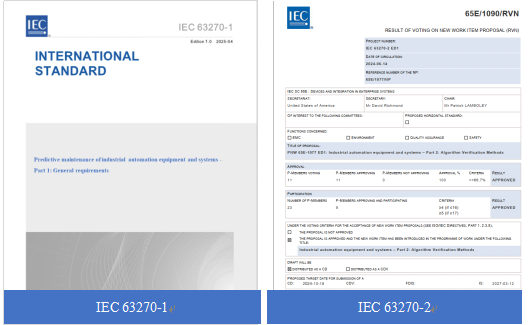 2025年4月17日,我國(guó)牽頭制定的國(guó)際標(biāo)準(zhǔn)IEC 63270-1:2025 《Predictive maintenance of industrial automation equipment and systems -Part 1: General requirements》正式發(fā)布。這是IEC首項(xiàng)預(yù)測(cè)性維護(hù)國(guó)際標(biāo)準(zhǔn),標(biāo)志著我國(guó)在預(yù)測(cè)性維護(hù)技術(shù)研究與國(guó)際標(biāo)準(zhǔn)化領(lǐng)域取得突破性進(jìn)展,為人工智能與制造業(yè)深度融合注入新動(dòng)能。