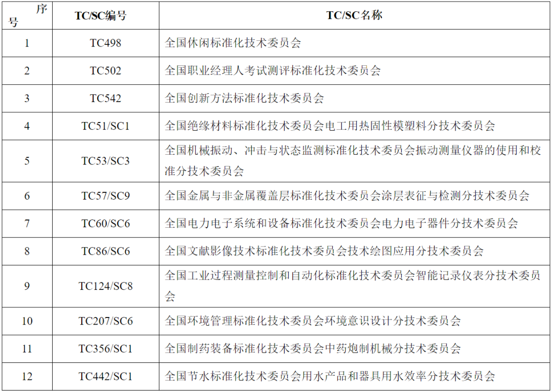根據《全國專業標準化技術委員會管理辦法》有關要求和標準化工作需要,擬撤銷全國休閑標準化技術委員會(SAC/TC498)等12個全國專業標準化技術委員會,現將擬撤銷名單公開征求各有關單位的意見和建議,各有關單位可進入全國專業標準化技術委員會信息公示系統發表意見和建議,征求意見時間截止到2026315日(以意見和建議收到時間為準),逾期不予受理。