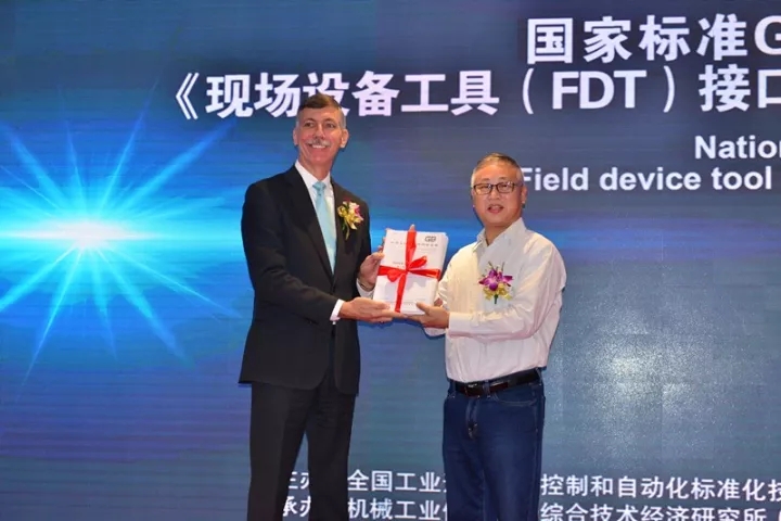 之后,中國儀器儀表行業協會李躍光副理事長對FDT技術在系統集成和互聯互通、服務于智能制造發揮的技術優勢給予了充分地肯定,對FDT專業委員會表達了殷切的希望:借助FDT標準的發布,促使國內企業快速融入智能制造潮流;儀綜所梅恪副所長代表FDT專業委員會主任委員、儀綜所歐陽勁松所長致辭,表示新版設備集成技術FDT國家標準的發布對進一步滿足企業對智能制造的新需求創造了條件,規范了現場設備和主機系統之間的通信和組態接口,是智能制造核心集成的重要解決方案;SAC/TC124秘書長、儀綜所副總程師工王春喜博士代表標準起草工作組介紹了FDT接口規范(6個部分)的國家標準的制定、審查過程和工作情況。隨后,大會向該系列國家標準起草工作組的專家代表頒發了紀念證書。
