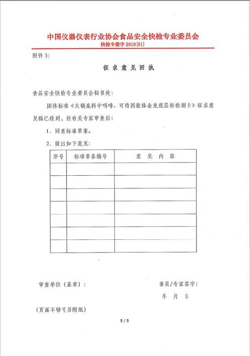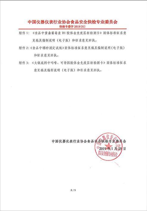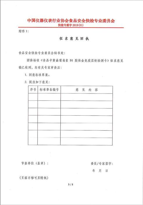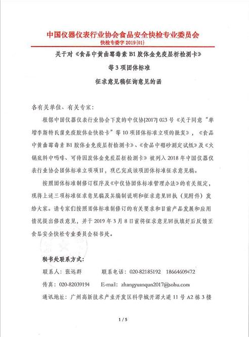 1、快檢專委字2019【01】關(guān)于對《食品中黃曲霉毒素B1測定膠體金免疫檢測卡》等3團(tuán)體標(biāo)準(zhǔn)征求意見稿征詢意見的函.pdf