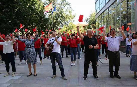 參加活動人員手持國旗,興高采烈,以齊聲高唱《我和我的祖國》的快閃形式,充分表達了中機聯系統職工對祖國母親熱烈而真摯的情感,拉開了頒獎活動的序幕。