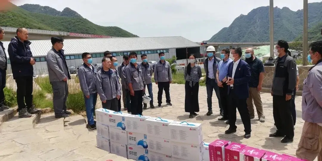 近日,京儀集團(tuán)黨委書記、董事長(zhǎng)高玉清,總經(jīng)理秦海波、副總經(jīng)理?xiàng)钅烂褚恍星巴討c小海坨冬奧智能化工程項(xiàng)目現(xiàn)場(chǎng)調(diào)研慰問,為項(xiàng)目現(xiàn)場(chǎng)工作人員送去防疫必備物品和夏日的清涼,京儀研究總院、京儀集團(tuán)本部相關(guān)人員共同參加。
