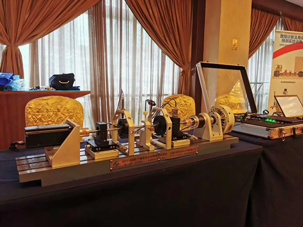 此次展出的是HZXT-008小型轉子滾動軸承綜合故障模擬實驗臺,及相關配套傳感器和采集分析系統,該實驗系統可以對滾動軸承的結構進行了解和觀測,也可靈活配置振動、轉速、噪聲、位移等等機械參量測量的傳感器,也可以模擬旋轉機械升降速瞬態過程及穩態運行工況的振動狀態,以及多種常見的旋轉機械故障并進行故障特征分析。