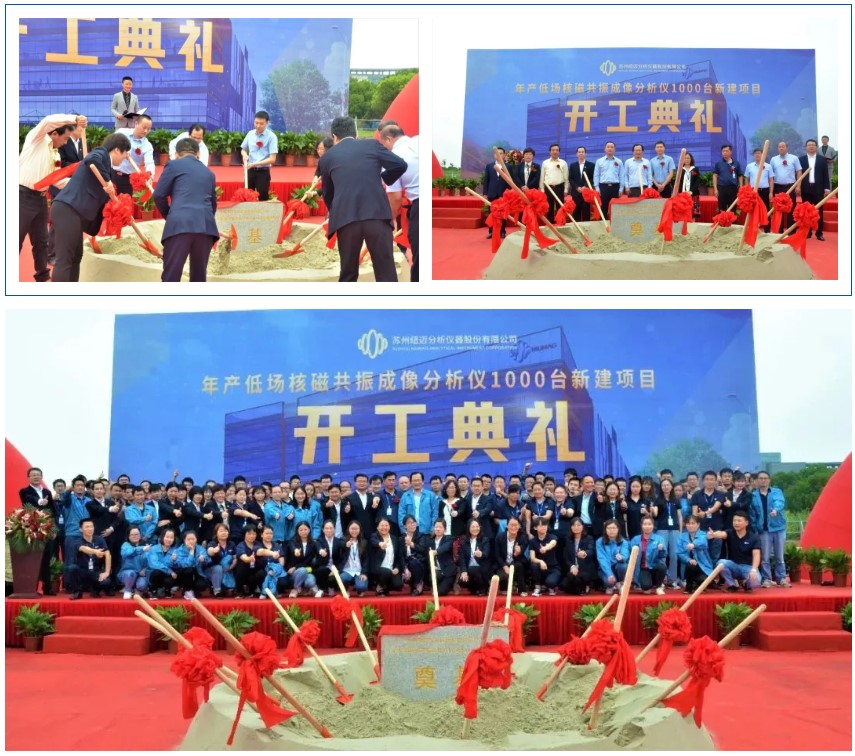 2020年9月23日,蘇州紐邁分析儀器股份有限公司年產低場核磁共振成像分析儀1000臺新建項目在蘇州滸墅關盛大開工。滸墅關鎮鎮長葉其中先生、招商局主任張燚先生、蘇州紐邁分析董事長楊培強先生、執行總經理李向紅女士、中電科工程建筑有限公司尹建芳先生等出席本次開工典禮。現場應邀參加的還有浙江大學蘇州高新區中小企業管理創新研修班一期的眾多企業家以及紐邁分析各部門員工代表們,百余人群情振奮、齊聚現場,共襄盛舉,見證紐邁分析這一歷史時刻。