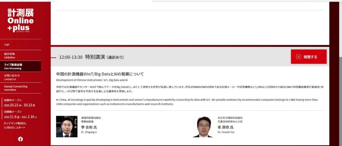 由中國儀器儀表行業協會(CIMA)與日本電氣計測器工業會(JEMIMA)共同組織的日本計測展2020 OSAKA中國論壇于10月22日在日本大阪舉辦,受全球新冠肺炎疫情影響,展會采取線上+線下的方式舉行,重點探討在新工業革命中測控技術的作用和未來前景。