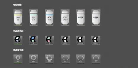 提供豐富的顯微鏡電動控制接口:電動物鏡轉盤、電動熒光濾光塊、電動聚光鏡轉盤。