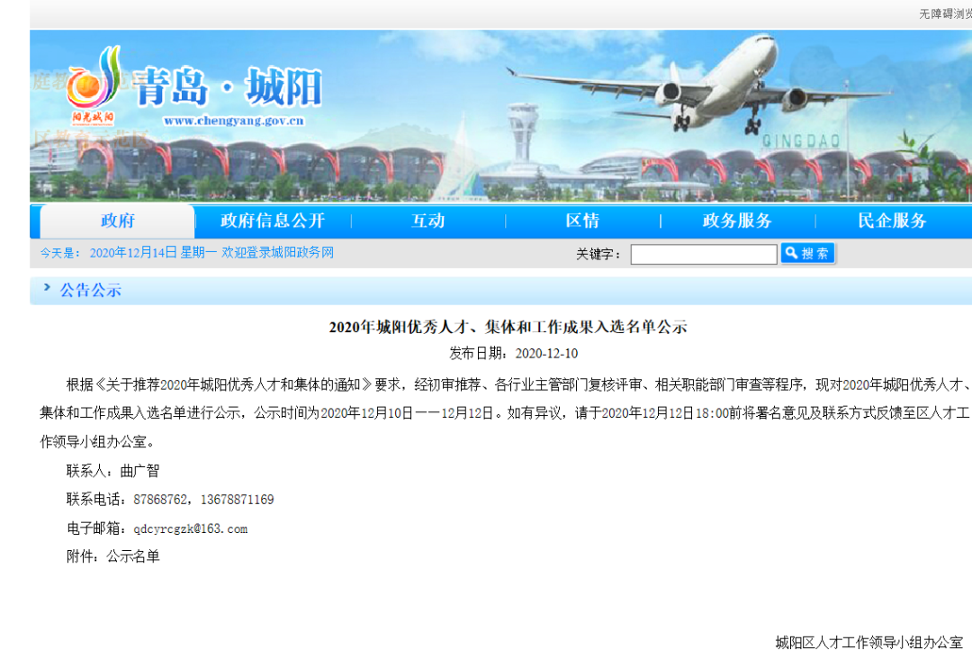 近日,山東省青島市城陽區人才工作領導小組辦公室公布了2020年城陽優秀人才、集體和工作成果入選名單,融智生物董事長周曉光入選該名單產業發展領軍人才獎項,同時融智生物入選該名單人才工作優秀集體、工作成果獎項。