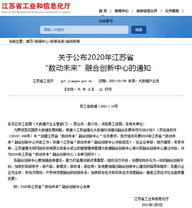科遠智慧入選2020江蘇“數動未來”融合創新中心