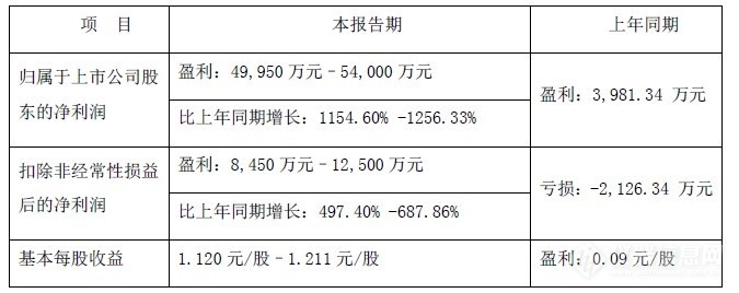 2021年1月29日,聚光科技發(fā)布2020年年度業(yè)績(jī)預(yù)告,預(yù)計(jì)2020年歸屬于上市公司股東的凈利潤(rùn)約49,950萬元–54,000萬元,比上年同期增長(zhǎng)1154.60%~1256.33%。詳細(xì)情況如下表所示:
