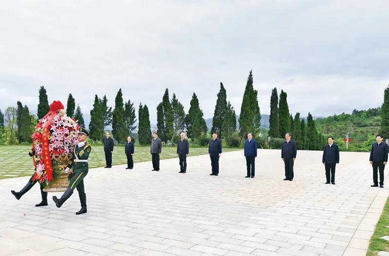 2021年4月25日至27日,中共中央總書記、國家主席、中央軍委主席習近平在廣西考察。這是25日上午,習近平在位于桂林市全州縣的紅軍長征湘江戰(zhàn)役紀念園,向湘江戰(zhàn)役紅軍烈士敬獻花籃。