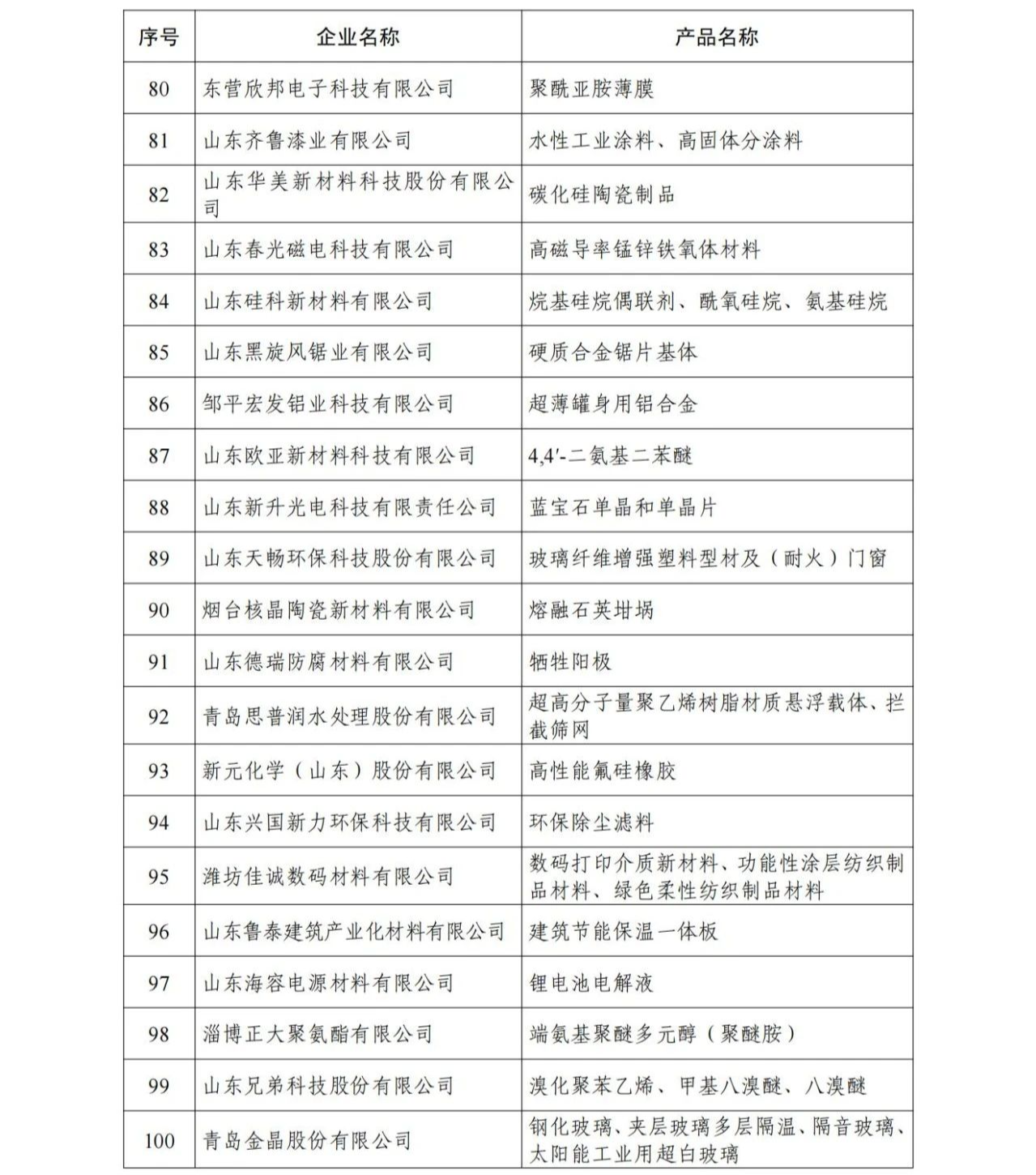 為加快實(shí)施新材料領(lǐng)軍企業(yè)培育工程,根據(jù)《山東省新材料產(chǎn)業(yè)發(fā)展專項(xiàng)規(guī)劃(2018-2022年)》《關(guān)于組織開(kāi)展2022年度山東省新材料領(lǐng)軍企業(yè)申報(bào)工作的通知》(魯工信新材〔2022〕269號(hào))要求,經(jīng)企業(yè)申報(bào)、各市推薦、專家評(píng)審和網(wǎng)上公示,確定了《2022年度山東省新材料領(lǐng)軍企業(yè)培育庫(kù)入庫(kù)名單》和《2022年度山東省新材料領(lǐng)軍企業(yè)50強(qiáng)名單》,現(xiàn)予以公布。
