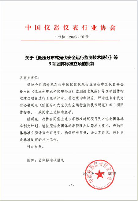 我協(xié)會(huì)組織專(zhuān)家對(duì)由中國(guó)儀器儀表行業(yè)協(xié)會(huì)電工儀器分會(huì)提出的《低壓分布式光伏安全運(yùn)行監(jiān)測(cè)技術(shù)規(guī)范》等3項(xiàng)團(tuán)體標(biāo)準(zhǔn)建議項(xiàng)目進(jìn)行了立項(xiàng)評(píng)審。通過(guò)質(zhì)詢(xún)和討論,評(píng)審組專(zhuān)家認(rèn)為有必要制定上述標(biāo)準(zhǔn),一致同意該9項(xiàng)團(tuán)體標(biāo)準(zhǔn)立項(xiàng)。
