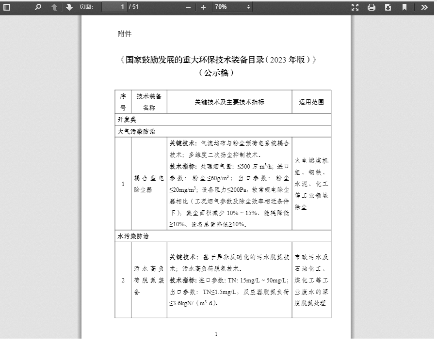 附件:《國家鼓勵發展的重大環保技術裝備目錄(2023年版)》(公示稿)