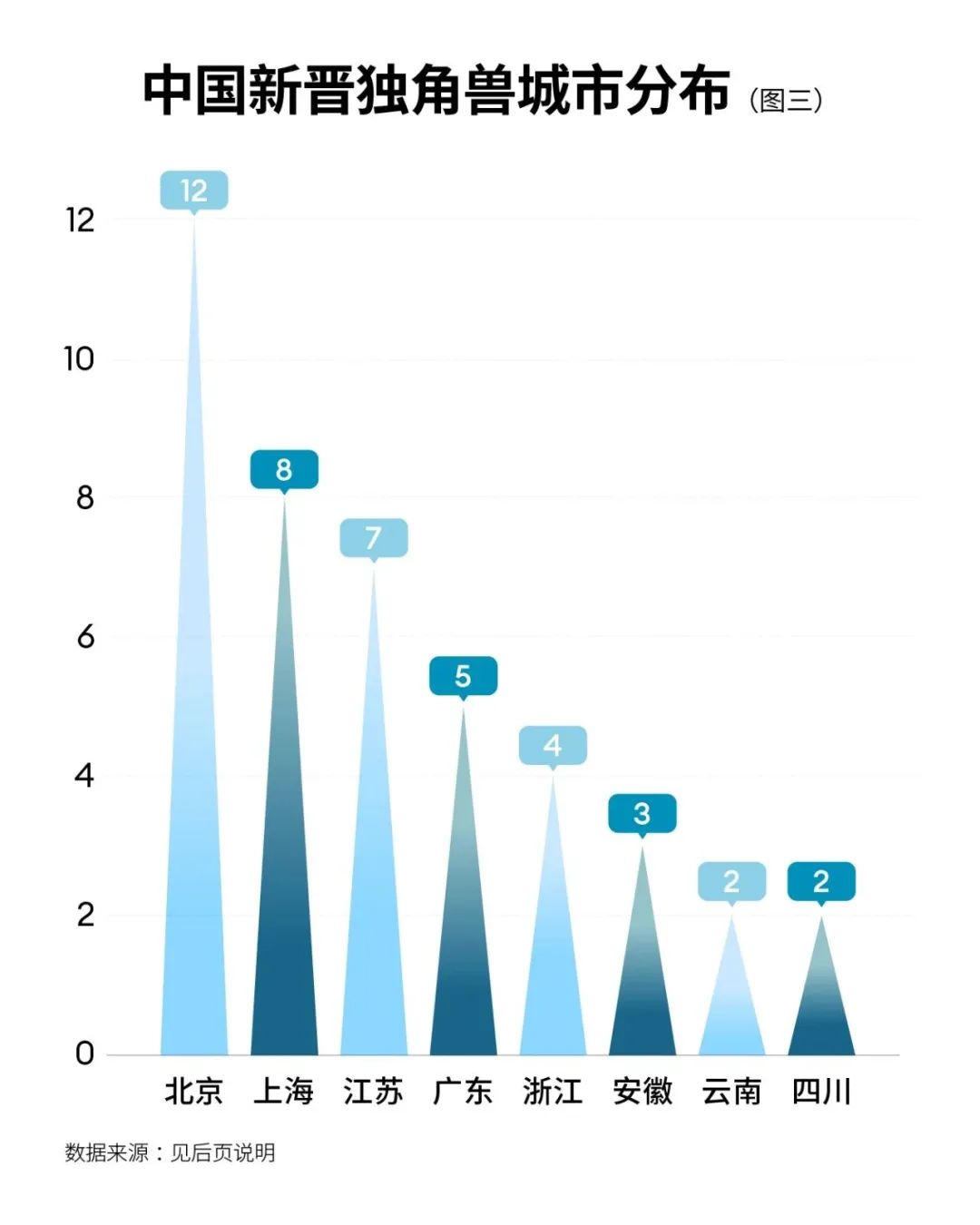 地區來看,2023年,北京創造了獨角獸總數的近三分之一,時隔一年反超上海、廣東重回第一。北京新增的獨角獸中近6成與人工智能技術密切相關;上海則是機器人相關的獨角獸繼續發力,如智元機器人與達闥機器人等均在今年獲得巨額融資。