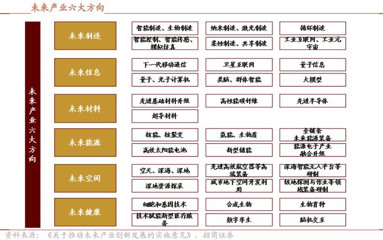 ●未來產(chǎn)業(yè):1月29日,7部門聯(lián)合發(fā)布《關(guān)于推動未來產(chǎn)業(yè)創(chuàng)新發(fā)展的實施意見》,其中提出“要重點推進未來制造、未來信息、未來材料、未來能源、未來空間和未來健康六大方向產(chǎn)業(yè)發(fā)展。”