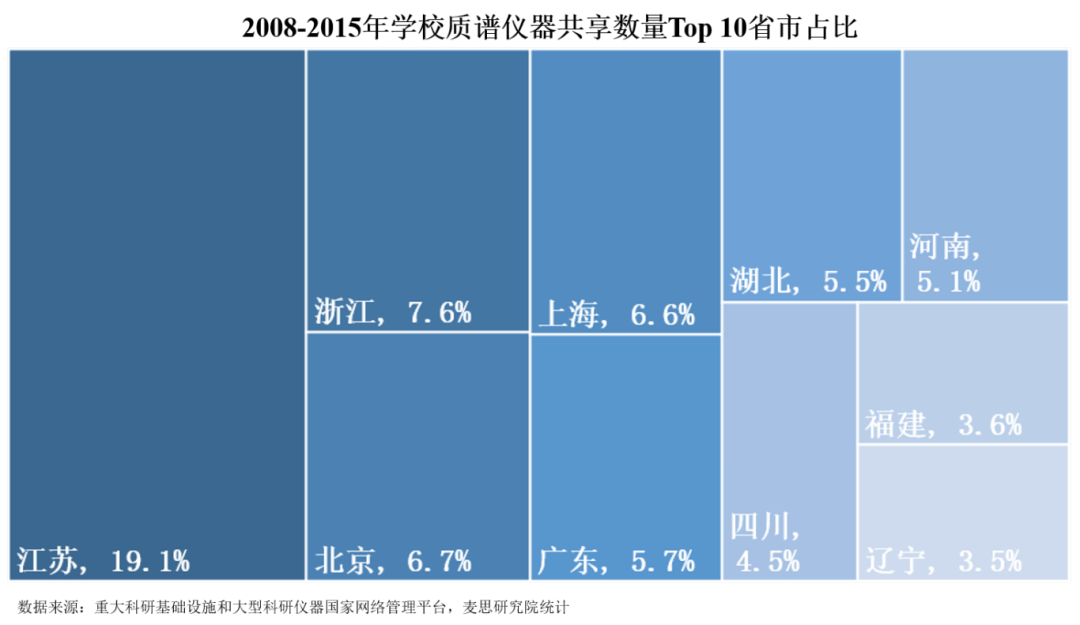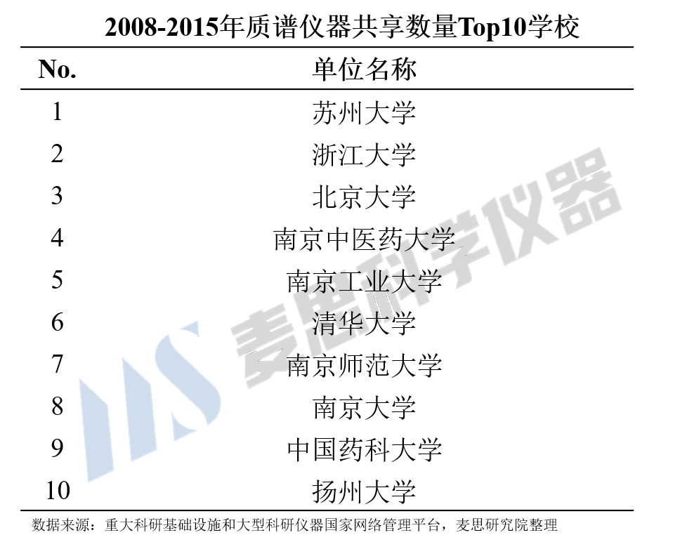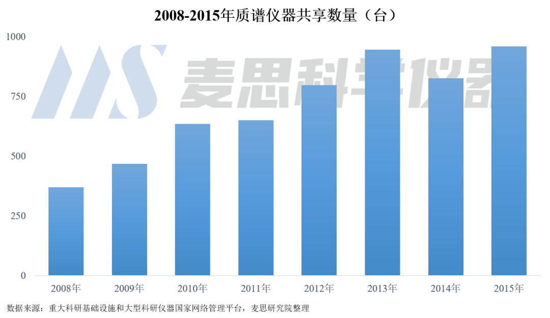 根據(jù)麥思研究院統(tǒng)計,2008-2015年共享平臺上約有5600臺質(zhì)譜儀器開始啟用,其中約2000臺來自各類學(xué)校。