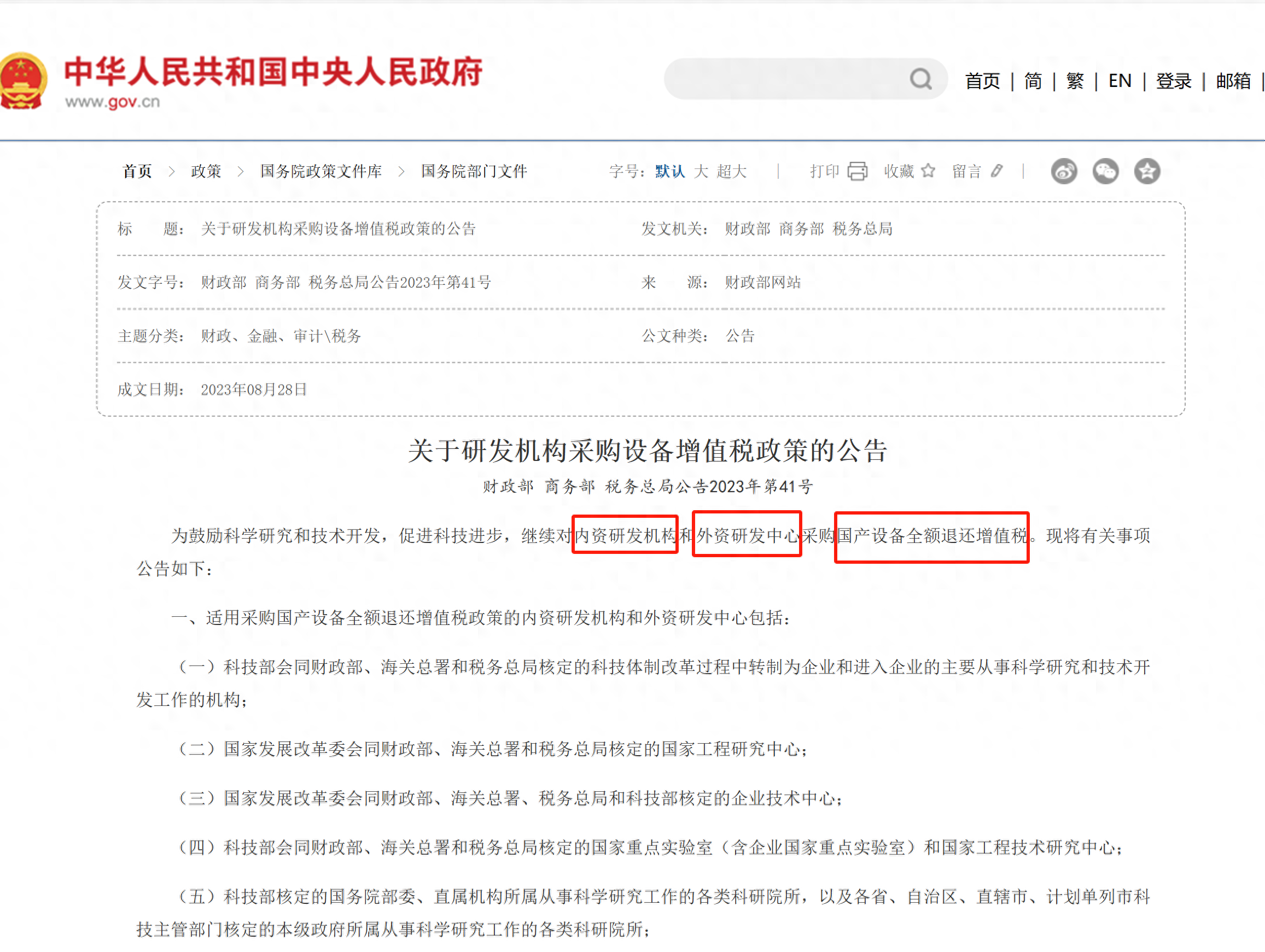 政府不僅從自身采購下手,財政部、商務部、稅務總局三部委聯(lián)合發(fā)文《關于研發(fā)機構采購設備增值稅政策的公告》明確指出內資研發(fā)機構和外資研發(fā)中心采購國產設備全額退還增值稅。也就是說在中國注冊的企業(yè),不管企業(yè)是國內資本還是外資,只要是研發(fā)中心,采購國產設備,一律退回增值稅!國家在用真金白銀補貼國產設備!