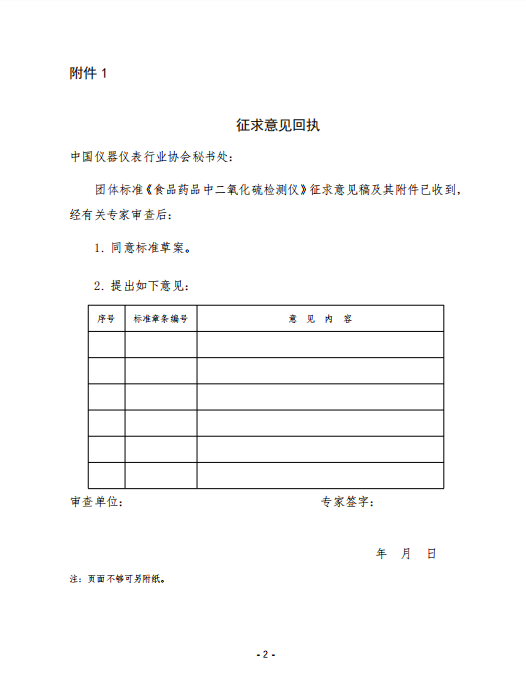 附件:1.征求意見回執—— 食品藥品中二氧化硫檢測儀