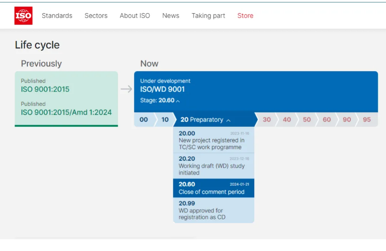 會議確定ISO 9001標準的修訂從2024年1月開始,將包括WD(Working Draft)、CD( Committee Draft)、DIS(Draft for International Standard)和FDIS(Final Draft for International Standard)四個階段。