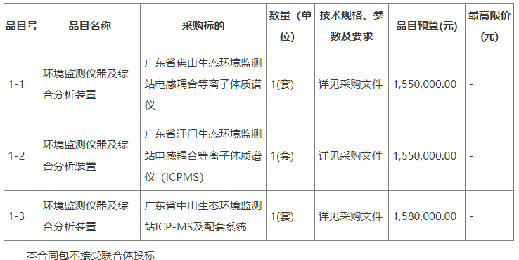 合同包1(2024年電感耦合等離子體質(zhì)譜儀及配套系統(tǒng)帶量采購項目):