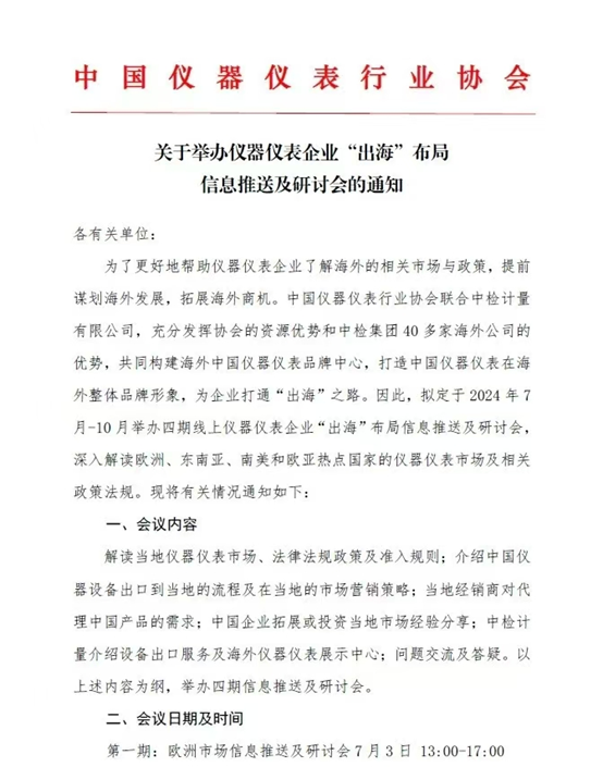 中國儀器儀表行業協會與中檢計量有限公司聯手,將舉辦第二期線上儀器儀表企業出海布局信息推送及研討會【泰國越南專場】,解鎖東南亞市場的無限可能。