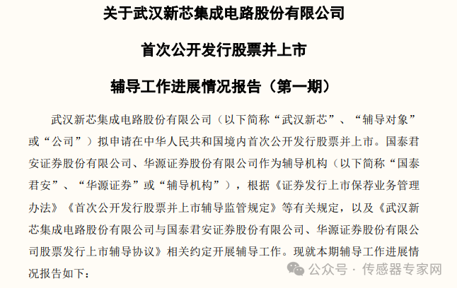 2024年5月,武漢新芯與國泰君安、華源證券簽署上市輔導協議,截止2024年7月11日,已完成第一期上市輔導工作。