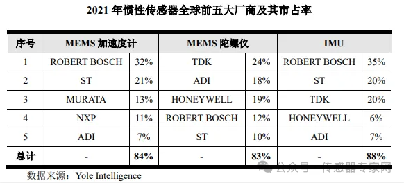 目前,市場上最成功的MEMS加速度計供應商是博世、意法半導體、村田制作所、恩智浦和亞德諾等,其中,博世和意法半導體分別以32%和21%市場份額領先。