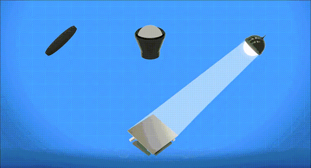 在一個DLP芯片里面微鏡數以百萬計,每一面反射鏡都可以獨立反轉運動,正負方向翻轉,每秒鐘翻轉次數高達數萬次。下圖是DMD芯片每一個微鏡翻轉,折射光線的過程,每一片微鏡都可以單獨控制,折射相應的光線,從而形成不同的色彩、明暗,每一個微鏡就如同我們電視的每一個像素點。