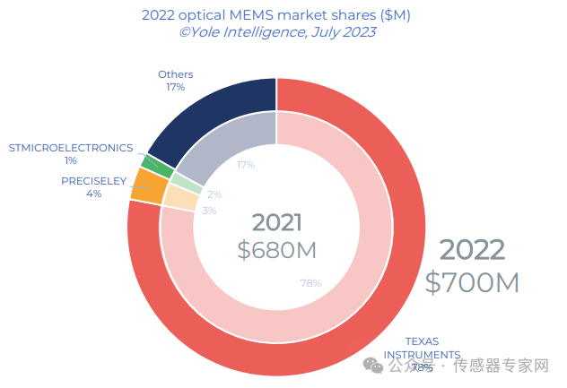 ▲2022全球光學MEMS市場份額,來源:Yole