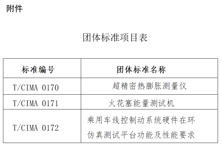 近日,根據(jù)《中國(guó)儀器儀表行業(yè)協(xié)會(huì)團(tuán)體標(biāo)準(zhǔn)管理辦法》的規(guī)定,經(jīng)審查,對(duì)由中國(guó)儀器儀表行業(yè)協(xié)會(huì)試驗(yàn)儀器分會(huì)提出的《超精密熱膨脹測(cè)量?jī)x》等3項(xiàng)團(tuán)體標(biāo)準(zhǔn)進(jìn)行立項(xiàng)(標(biāo)準(zhǔn)編號(hào)和名稱見(jiàn)下表),特此公告。
