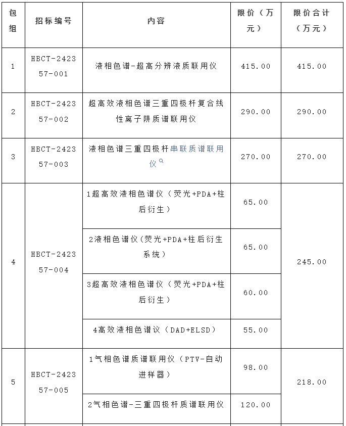 11月1日,中國(guó)政府采購(gòu)網(wǎng)發(fā)布了石家莊海關(guān)技術(shù)中心2024年實(shí)驗(yàn)室儀器設(shè)備更新項(xiàng)目公開招標(biāo)公告,項(xiàng)目預(yù)算金額2397萬(wàn)元,采購(gòu)液相色譜-超高分辨液質(zhì)聯(lián)用儀、高效液相色譜議、氣相色譜-三重四極桿質(zhì)譜聯(lián)用儀、原子吸收分光光度計(jì)等儀器設(shè)備。