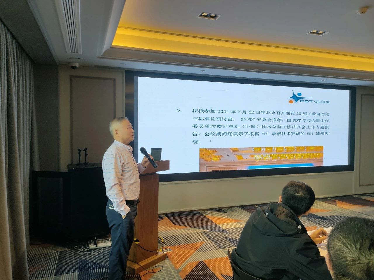 會議于上午9點準時開始,中國FDT專委會常務副主任委員,來自恩德斯豪斯的王奕瑋先生向參加本次會議的全體代表致歡迎詞,向大家介紹了FDT專委會在今年下半年與國際FCG組織的溝通、合作進展,以及對專委會2025年各項重點工作的初步設想。隨后進行了本次會議的一項重要提案表決 -- 專委會委員單位及人員調整方案:增補章安冬為委員單位美名軟件代表;增補FCG為常委單位,王駿為代表。以上提案經現場代表一致通過并立即生效。