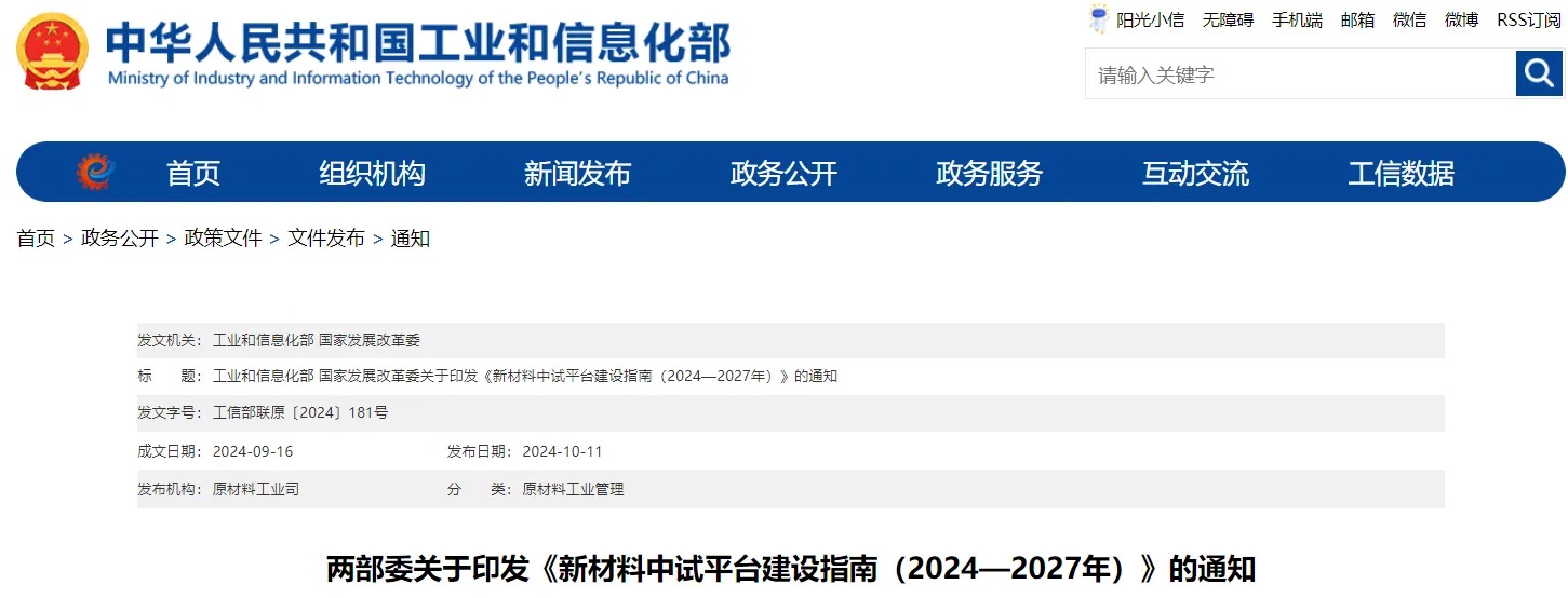 近期國家部委已發布了多項新材料政策,如工信部發布的關于加快布局建設制造業中試平臺的通知和國家重點研發計劃2024年度項目申報指南,政策對具體的新材料領域做了更細節的規劃。
