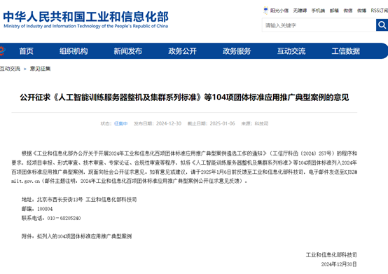 工信部12月30日發(fā)布消息,根據(jù)《工業(yè)和信息化部辦公廳關(guān)于開(kāi)展2024年工業(yè)和信息化百項(xiàng)團(tuán)體標(biāo)準(zhǔn)應(yīng)用推廣典型案例遴選工作的通知》(工信廳科函〔2024〕257號(hào))的程序和要求,經(jīng)項(xiàng)目申報(bào)、形式審查、技術(shù)審查、專家論證、合規(guī)性審查等程序,擬將《人工智能訓(xùn)練服務(wù)器整機(jī)及集群系列標(biāo)準(zhǔn)》等104項(xiàng)團(tuán)體標(biāo)準(zhǔn)列入2024年百項(xiàng)團(tuán)體標(biāo)準(zhǔn)應(yīng)用推廣典型案例,現(xiàn)面向社會(huì)公開(kāi)征求意見(jiàn)。