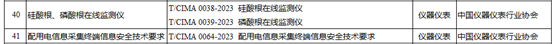 由中國(guó)儀器儀表行業(yè)協(xié)會(huì)發(fā)布的3項(xiàng)團(tuán)體標(biāo)準(zhǔn)T/CIMA 0038-2023《硅酸根在線監(jiān)測(cè)儀》、T/CIMA 0039-2023《磷酸根在線監(jiān)測(cè)儀》和T/CIMA 0064-2023《配用電信息采集終端信息安全技術(shù)要求》被納入公示名單。