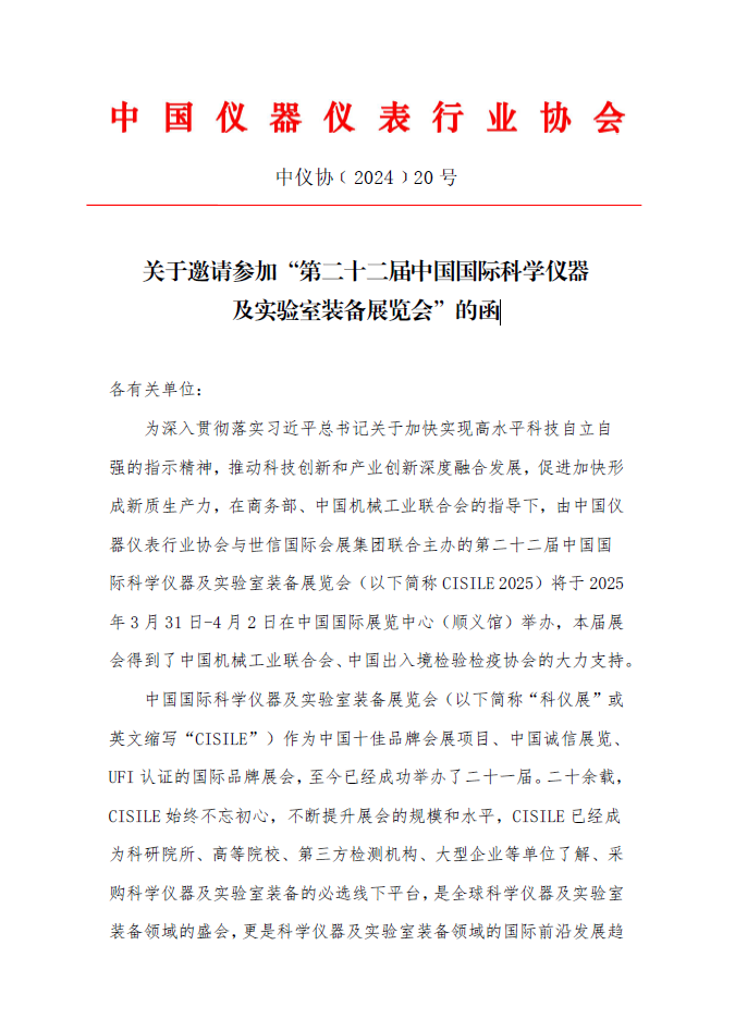 關于邀請參加“第二十二屆中國國際科學儀器及實驗室裝