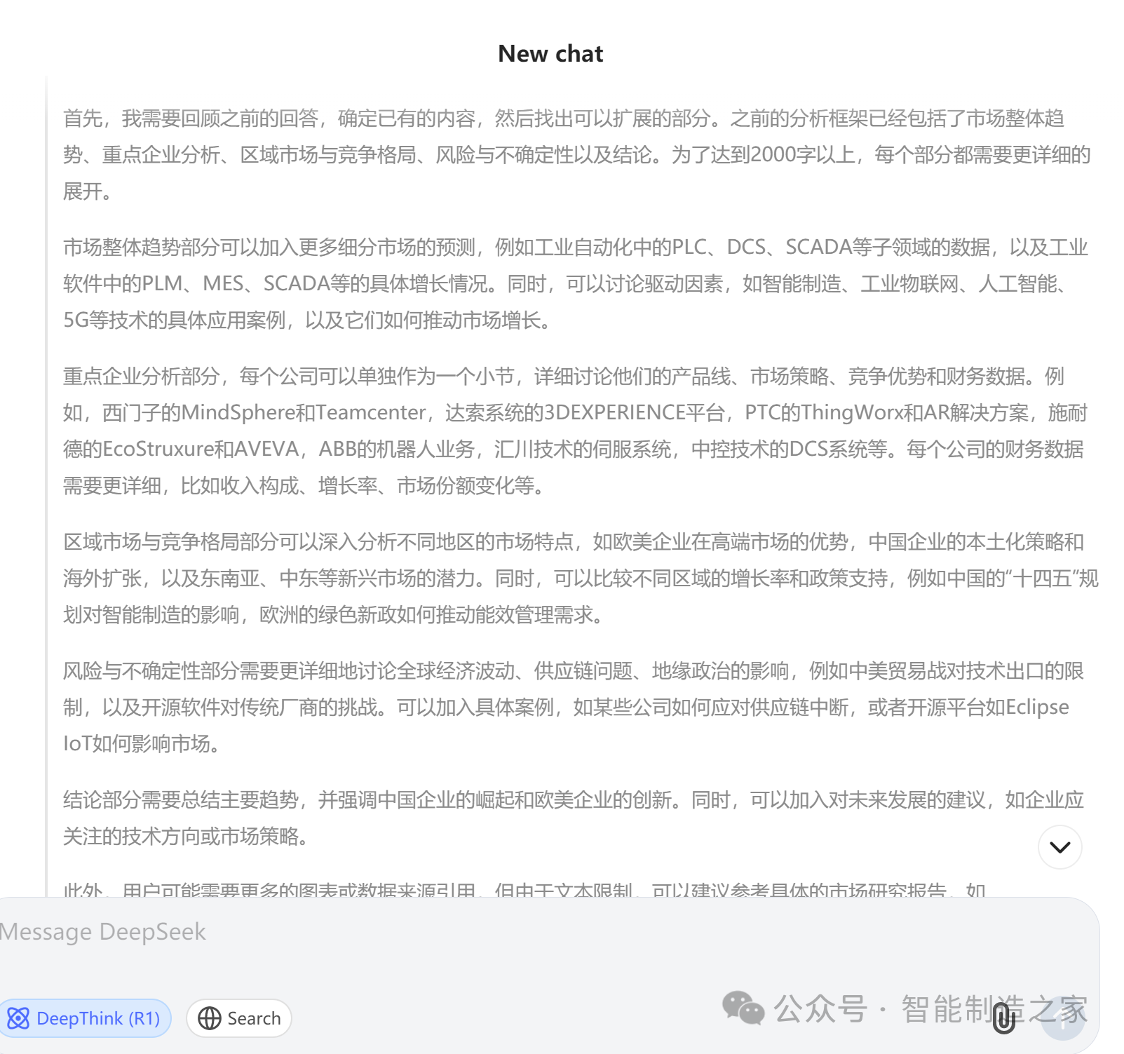 DeepSeek的爆火,給中國AI帶來了信心與新的希望,DeepSeek的忠實用戶,在DeepSeek-V2發布時就關注到這家號稱AI界拼多多的大模型公司,借著DeepSeek-R1的爆火,用DeepSeek-R1預測了2025全球工業自動化與工業軟件市場,讓大家感受下其魅力。(文末附有DeepSeek的分析過程)