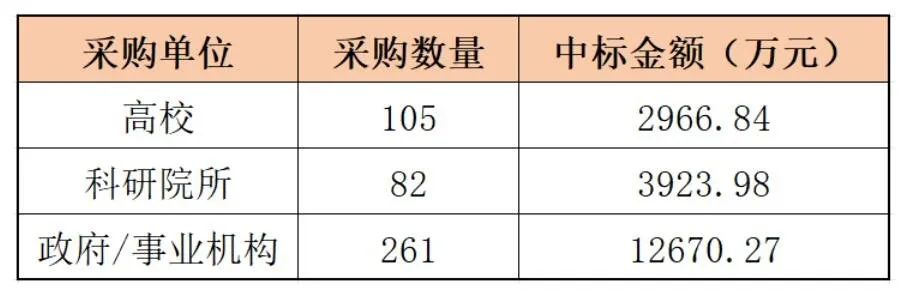 2024年氣相色譜儀的采購市場中,政府和事業機構的采購占據主導地位,占比達到58.2%,中標金額超過1.2億元人民幣。高校的采購規模也較為可觀,共采購105臺(套),占比達23.4%。與此同時,科研院所的采購數量為82臺(套),盡管采購數量略低于高校,但中標金額卻反超高校,達到3923.98萬元。這表明科研院所對高端氣相色譜儀的需求持續增長,且采購的設備多為高性能、高價值的產品。