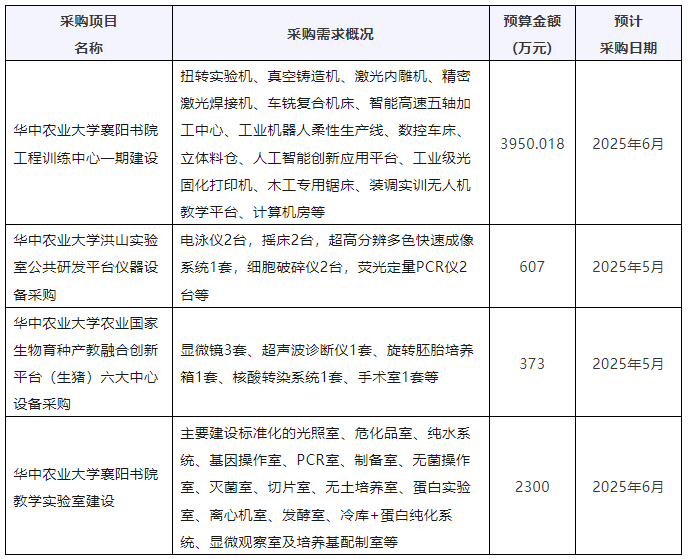 華中農(nóng)業(yè)大學(xué)儀器采購意向匯總