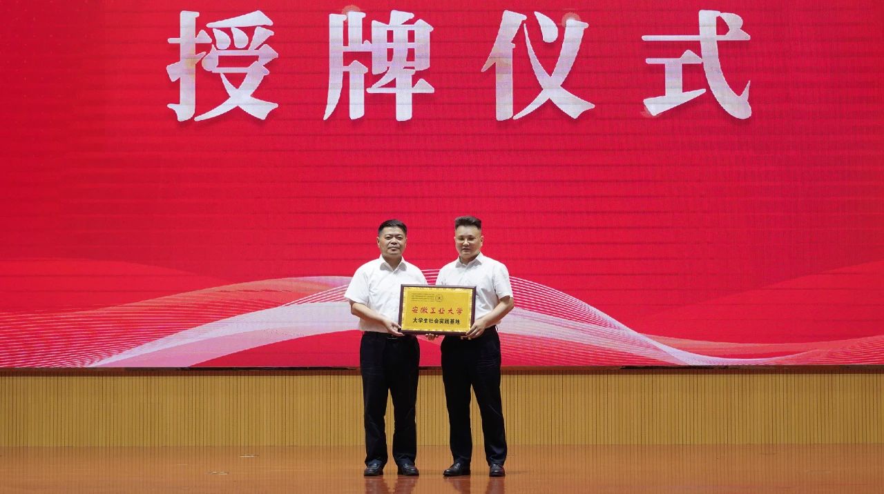 會(huì)議期間舉行了“大學(xué)生社會(huì)實(shí)踐基地”授牌儀式,安徽工業(yè)大學(xué)黨委書(shū)記陸林與天康集團(tuán)黨委副書(shū)記、總經(jīng)理毛文章代表雙方授接牌匾。